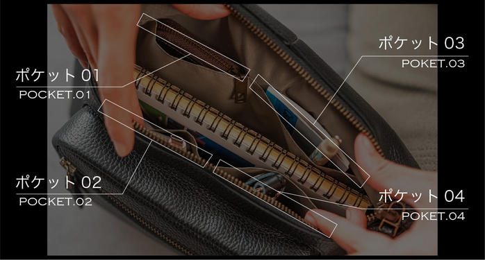 - 整理整頓を考慮して、外側に2つ、内側に4つの合計6ポケットを設置しました。