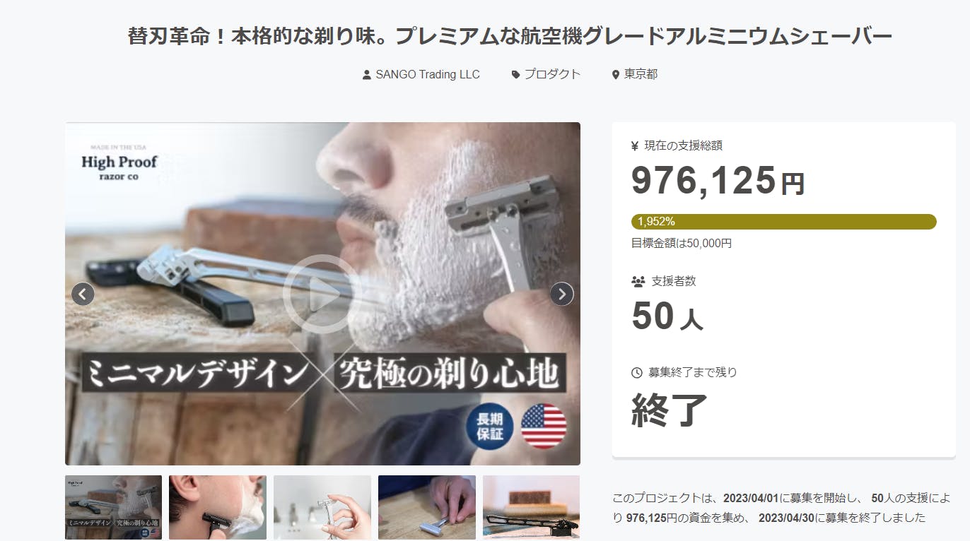 - 第1弾のシェーバーは米国クラファンサイト「Kickstarter」でわずか15日のプロジェクトにも関わらず、286人、$27,499の支援を達成した実績があります!