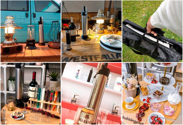 ドリンク:スパークリング日本酒(日本酒+CO₂)、ナイトロワイン(ワイン+N₂)