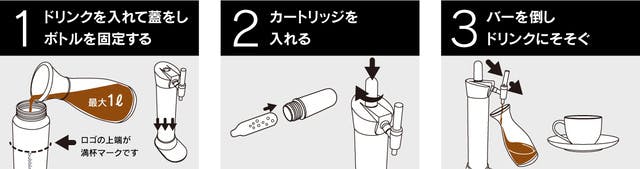 本商品にて作成されたドリンクは、蓋を開けない限りガスは漏れることはありません。一度に飲み切らなくても冷蔵庫で保管することによって衛生面を考慮して3日間の保存は可能です。ガスを注入してからも徐々に味やテイストは変わっていきますので是非最後の一滴までお楽しみください。※カートリッジは 1 回使い切りタイプです。・その他使用上の注意点は?