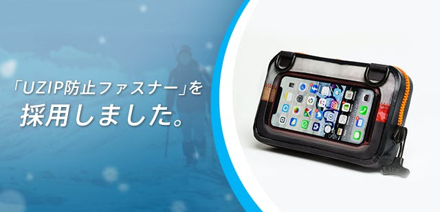 そこで【ugo PHONE2.0】のファスナーは潜水服にも使用されるドイツTitex(タイテックス)社で生産した特殊な防水ファスナー「UZIP防止ファスナー」を採用しました。