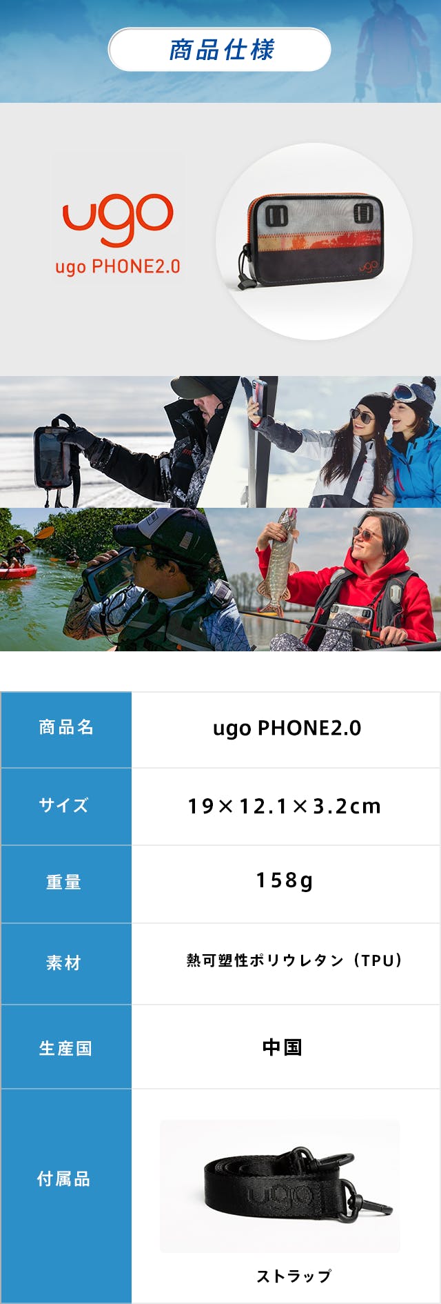ugo製品は皆様の大切な貴重品を徹底的に守り、気兼ねなくアクティビティを楽しみたい方にぴったりで、お客様から「こんな製品を探していた」と言っていただくことがよくあります。様々な環境、季節で使える「PHONE 2.0」をぜひ試してみてください!